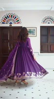 Purple Color Faux Georgette Fabric Sequence Work Gown