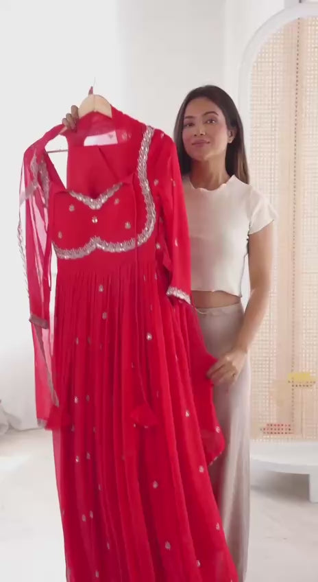 Red anarkali and gown