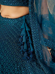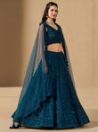 Teal blue thread embroidered wedding lehenga choli